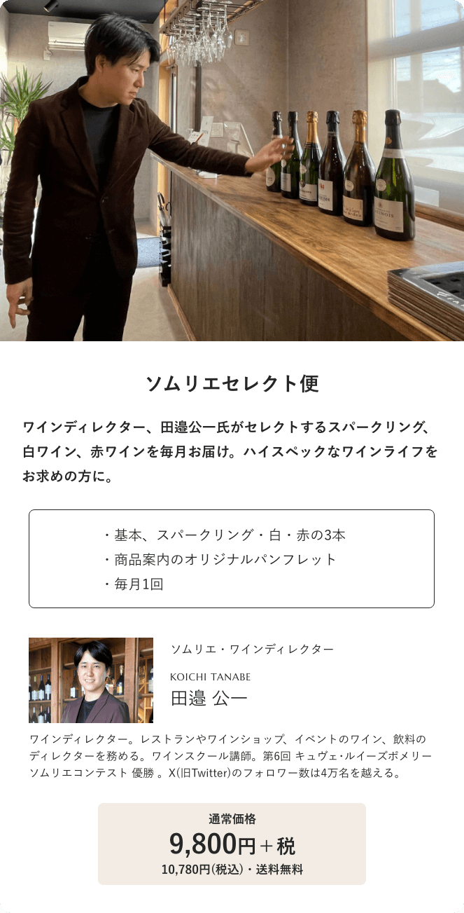 毎月、ソムリエセレクトのワインが届く